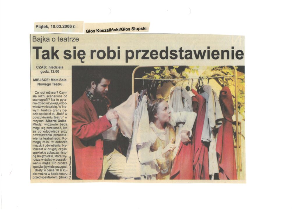 Na podstawie utworu Baśń w poszukiwaniu teatru Iwony Wernikowskiej.