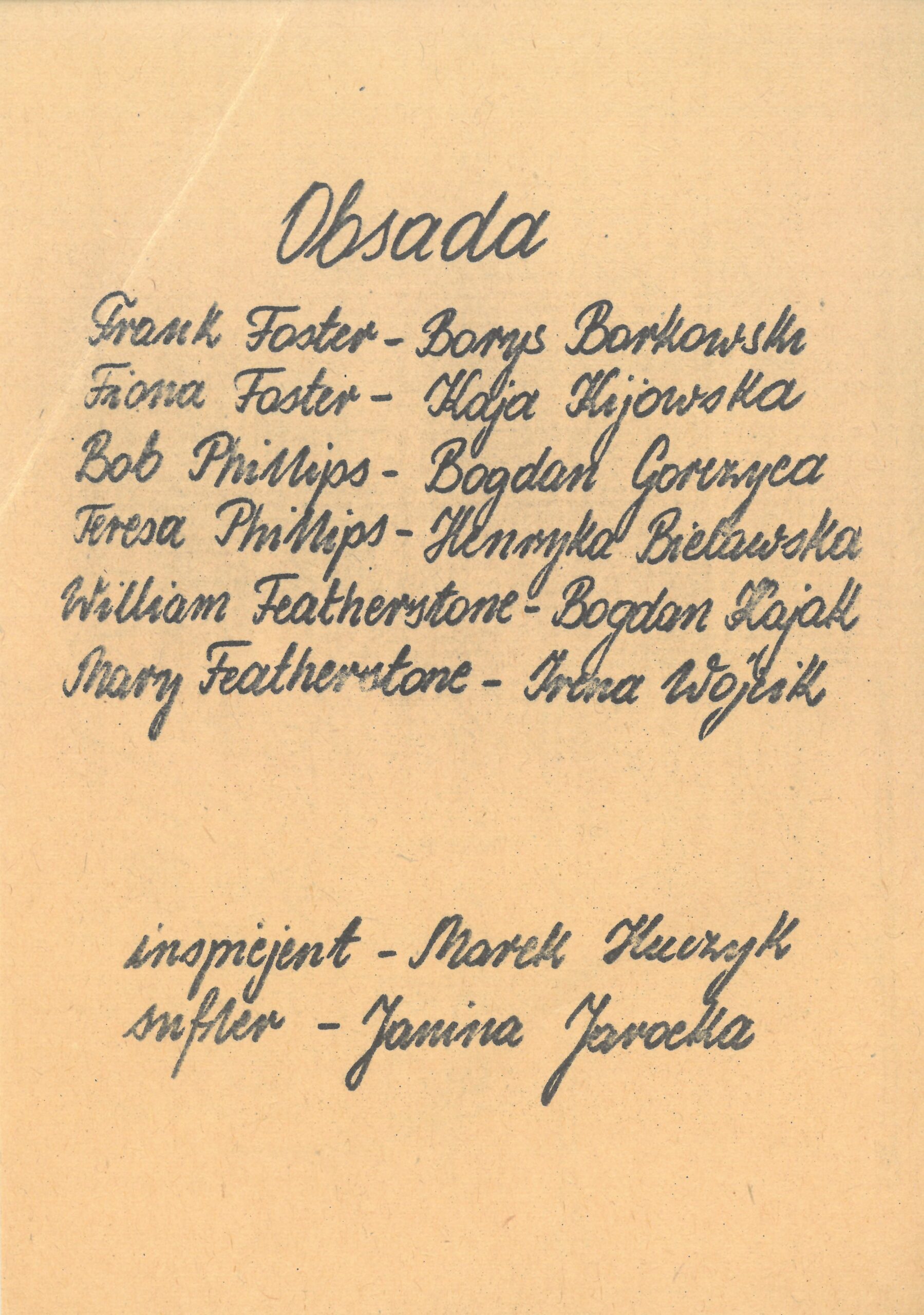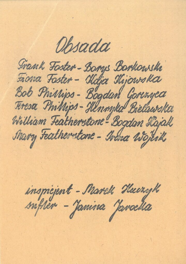 Frank – Borys Borkowski, Fiona – Kaja Kijowska, Bob – Bogdan Gorczyca, Teresa – Henryka Bielawska, William – Bogdan Kajak, Mary – Irena Wójcik
