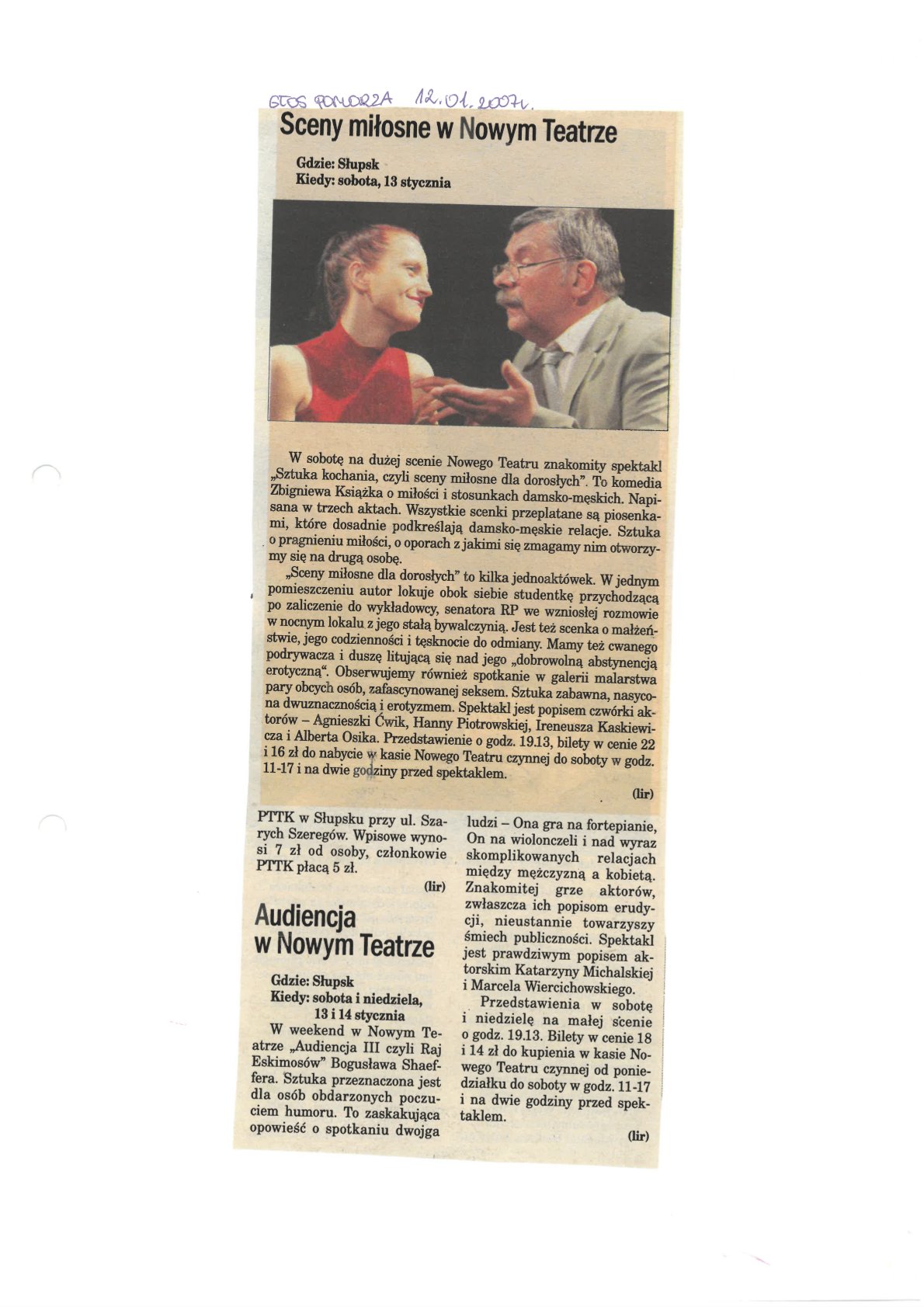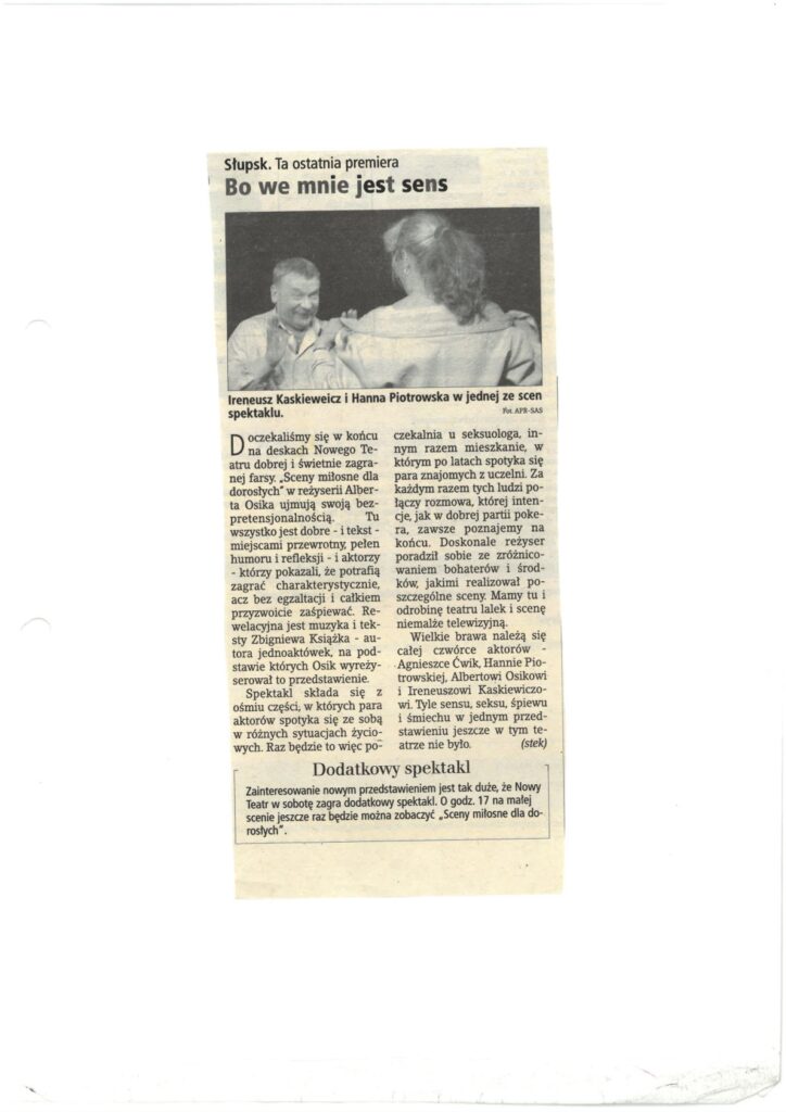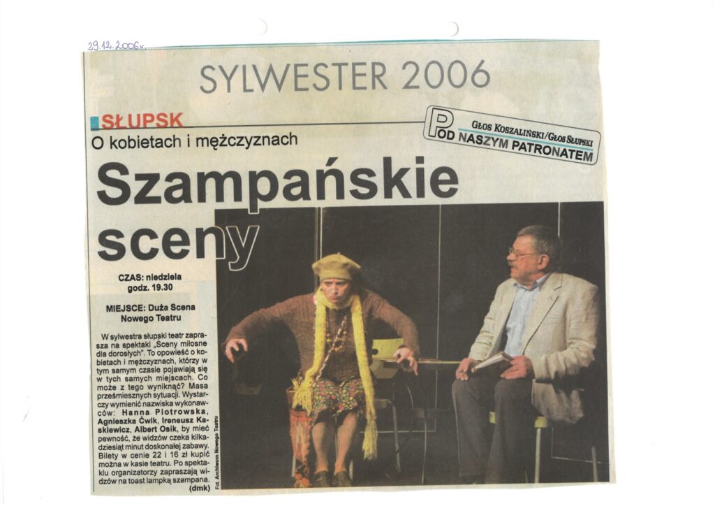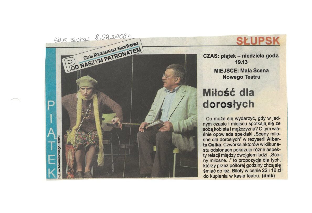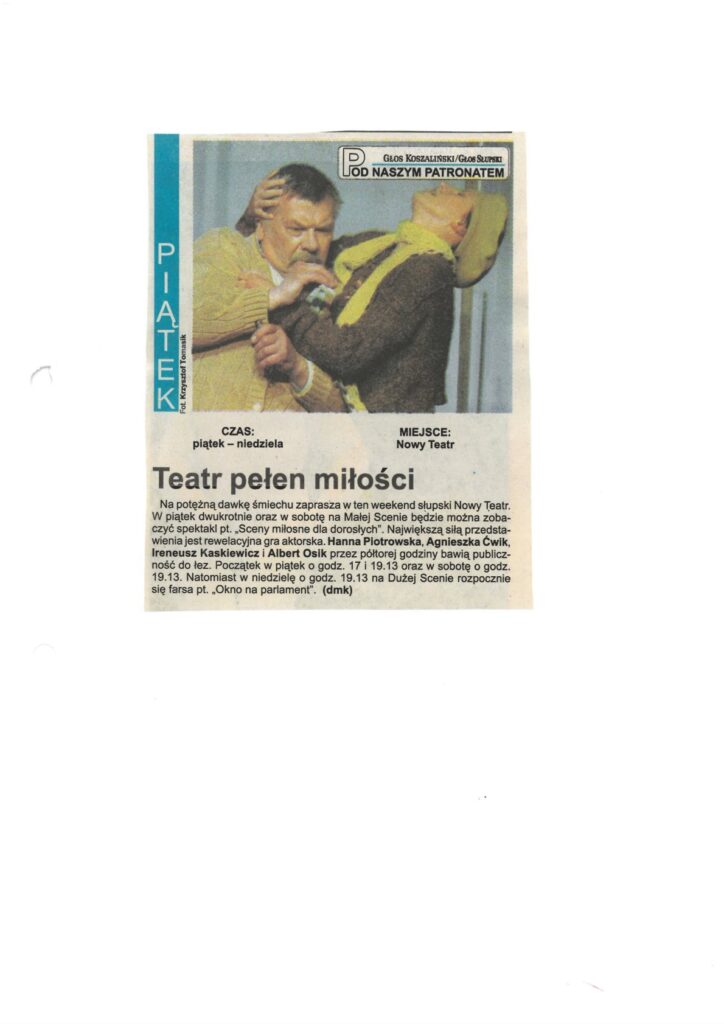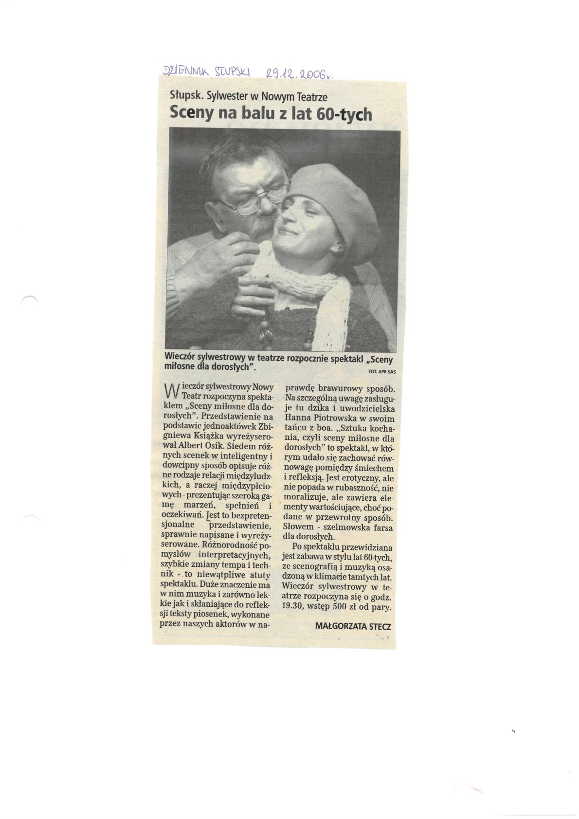 Na podstawie utworu Sceny miłosne dla dorosłych Zbigniewa Książka. Premiera: 10.06.2006 r.