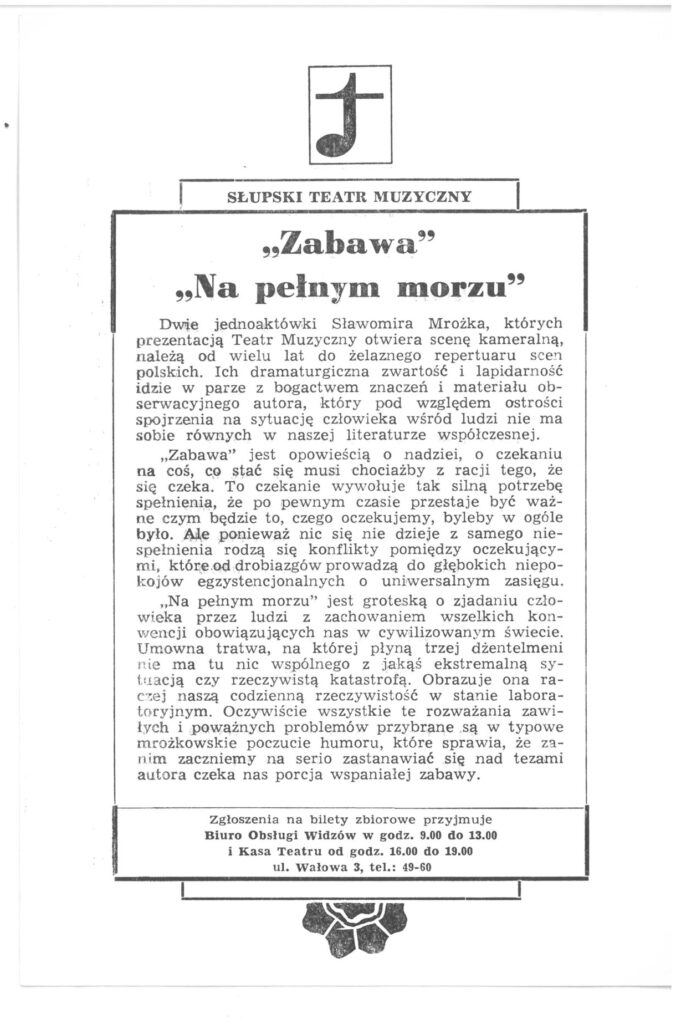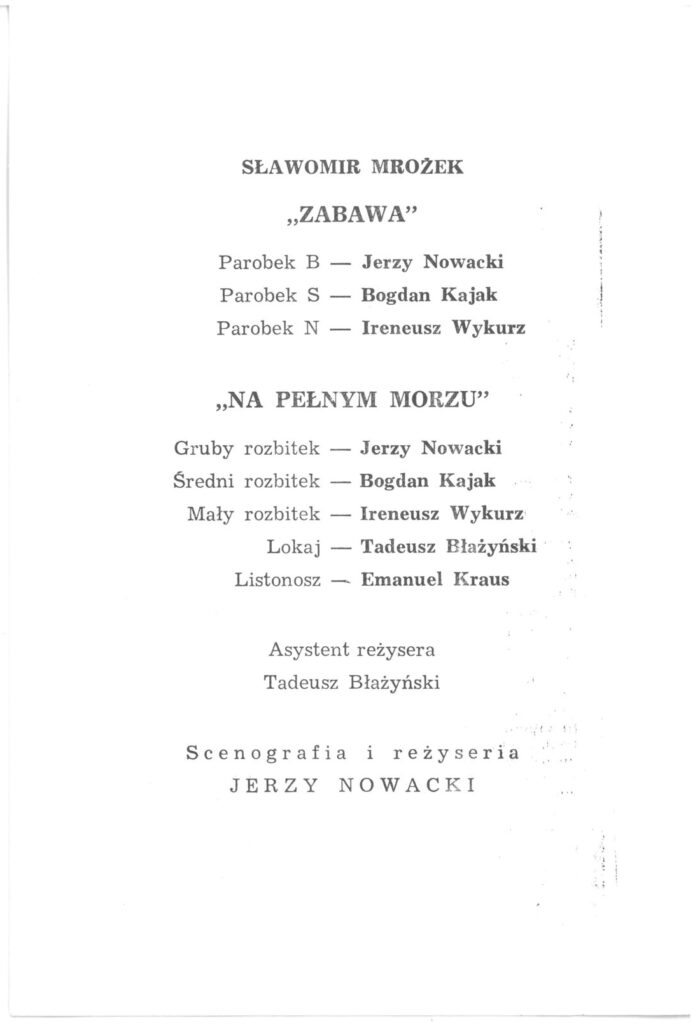 Na podstawie utworów Sławomira Mrożka – Zabawa, Na pełnym morzu.